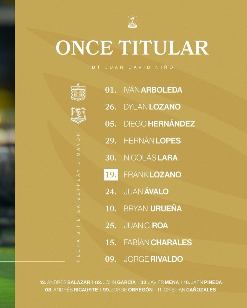 - Águilas Doradas: Javier Mena por N. Lara (45′), Jorge Obregón por J. Rivaldo (66′), Cristián Cañozales por B. Urueña (69′), Andrés Ricaurte por J. Ávalo (82′), Jaen Pineda por F. Charales (82′).