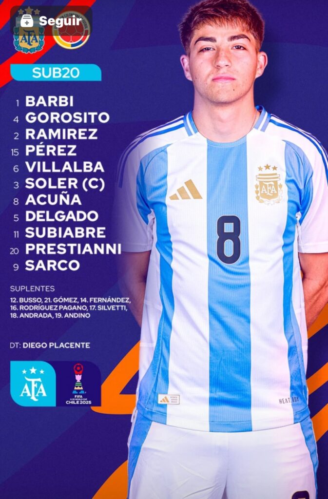 La Selección Colombia Sub-20 cayó 0-1 ante Argentina en el estadio Fiscal de Talca y se despidió del Mundial, en un partido de alto ritmo, con dominio alternado y decidido por un gol de Mateo Silvetti en la segunda mitad. El equipo de César Torres lo dio todo, pero no le alcanzó para mantener viva la ilusión mundialista.