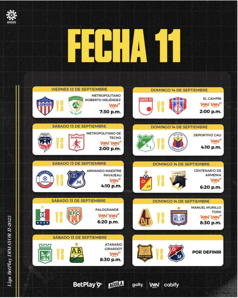 Hoy inicia la fecha 11 de la Liga BetPlay DIMAYOR conoce los horarios y árbitros designados.