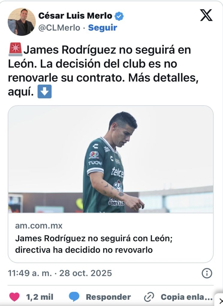 A pesar de las expectativas, el paso de James por León no logró consolidarse como se esperaba. Entre lesiones, irregularidad y algunas actuaciones destacadas, el exjugador del Real Madrid y Bayern Múnich no consiguió sostener un rendimiento que justificara su continuidad. Además, su alto salario sería otro de los factores determinantes en la decisión de la institución mexicana.