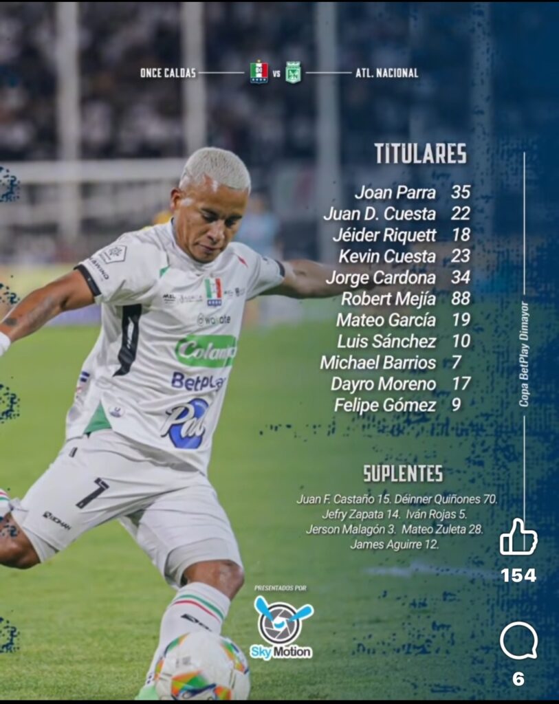 Nacional dio un paso firme hacia las semifinales de la Copa BetPlay Dimayor 2025 tras imponerse 1-0 al Once Caldas en el estadio Palogrande, en un partido intenso, disputado y con un protagonista indiscutible: Luis Marquínez, el arquero verdolaga que sostuvo la ventaja hasta el final.
