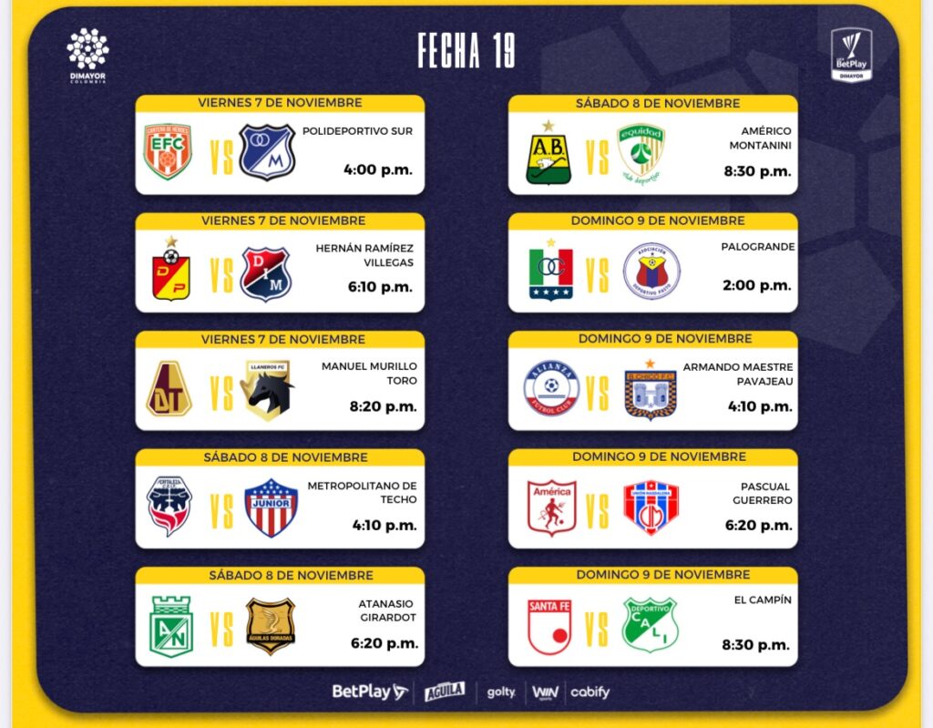 La División Mayor del Fútbol Colombiano (Dimayor) anunció la programación oficial de la fecha 19 de la Liga BetPlay Dimayor II-2025, luego del aplazamiento inicial producto de los ajustes en el calendario. Esta jornada será decisiva, pues muchos equipos se juegan la clasificación a los cuadrangulares finales.