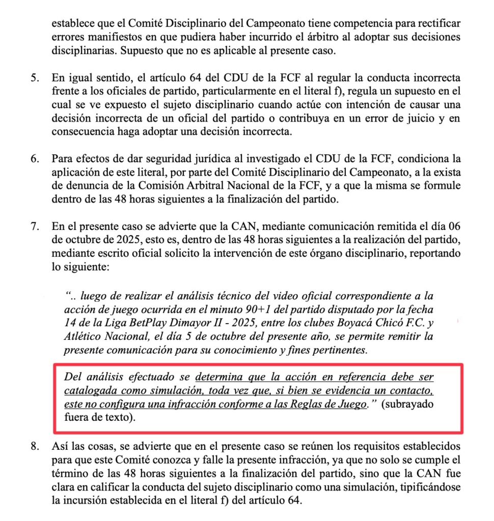 El Comité Disciplinario concluyó que Morelos exageró el contacto con el defensor, induciendo a error al árbitro pese a la revisión del VAR. La medida incluye la inhabilidad del jugador para enfrentar los próximos compromisos del equipo, incluyendo el clásico paisa.