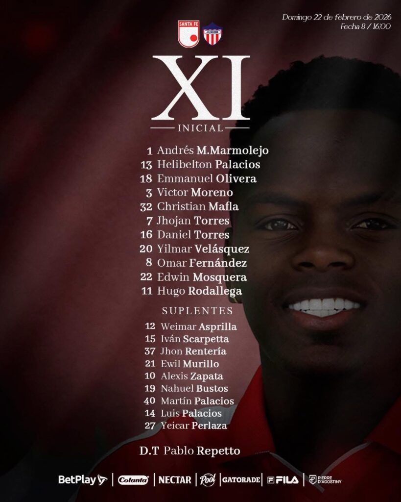 - Independiente Santa Fe: Nahuel Bustos por Y. Velásquez (47′), Iván Scarpetta por V. Moreno (52′), Murillo por D. Torres (52′).
