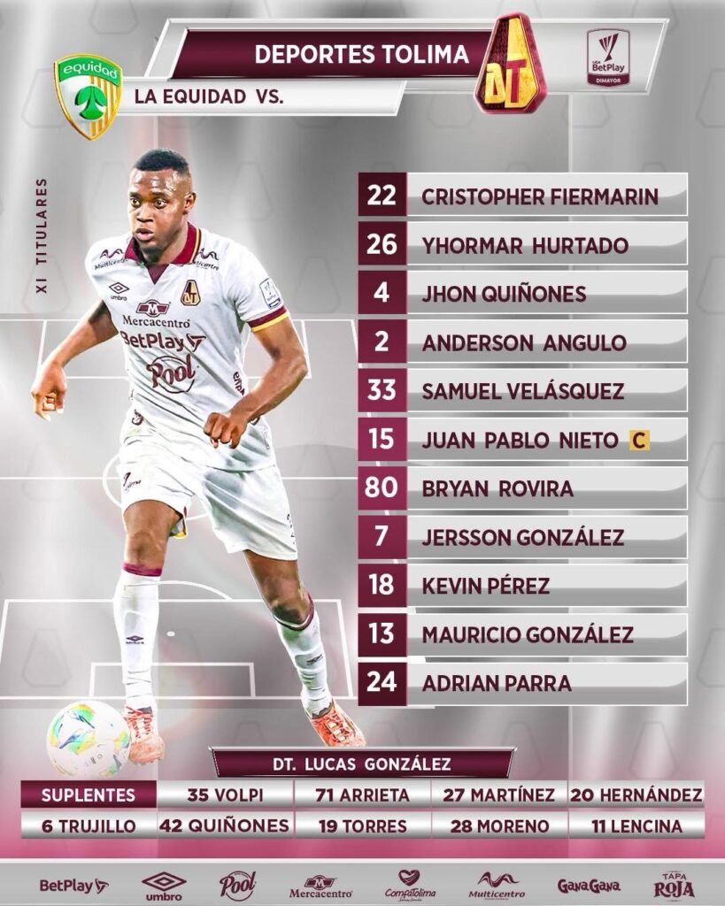 Deportes Tolima dio un golpe de autoridad en el estadio de Techo. El equipo dirigido por Lucas González venció 2-0 a La Equidad por la fecha 16 de la Liga BetPlay II-2025, resultado que lo mantiene firme en el grupo de los ocho con 26 puntos.